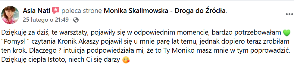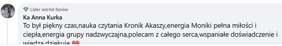 Z doświadczenia wiem, jak mocno Czytanie Kronik potrafi uzdrowić życie. Chcę, żeby każdy mógł tego doświadczyć – bez barier finansowych. Dlatego cena jest symboliczna.